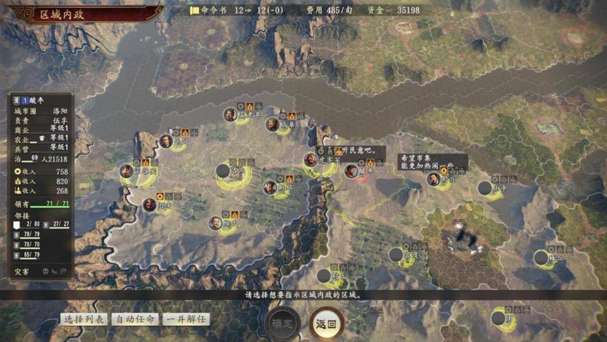 而《三国志14》通过地区内务系统无缺惩办了这一贫困。每座城池过甚操纵聚落,王人可安排别称武将专注于农业、买卖或兵员成立,一朝任命稳当,武将便会执续责任,无需玩家反复操作。不同武将的加成末端各异显贵,有的能带来十几点属性普及,有的则不及五点,而城池发展度径直决定了每回合的资源产出。更贴心的是,游戏取消了主动募兵功能,改为依据区域发展度自动征兵,玩家只需一次排班,就能坐享赋税兵自动增长。