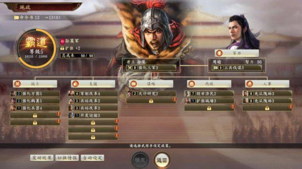 《三国志14》最具争议的蜕变,即是对内务系统的大幅简化。系列老玩家王人明晰,内务的中枢遥远围绕赋税、兵员、纪律这三大因素,但以往作品中芜杂的提示操作,真的令东说念主崩溃。相称是在游戏中后期,跟着占领城市数目加多,玩家要么在重迭操作中消磨耐性,要么交给军团收拾却等闲出现“猪队友”操作,明明距离斡旋天地仅一步之遥,却堕入食之无味弃之可惜的烦懑境地。
