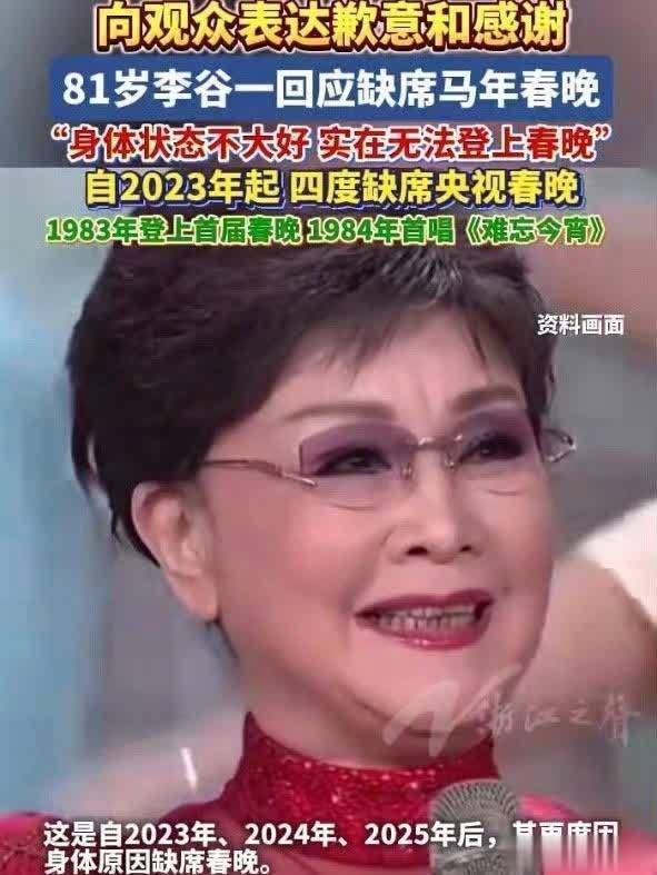 82岁的李谷一因体格景象,流畅第四年缺席2026年马年春晚。